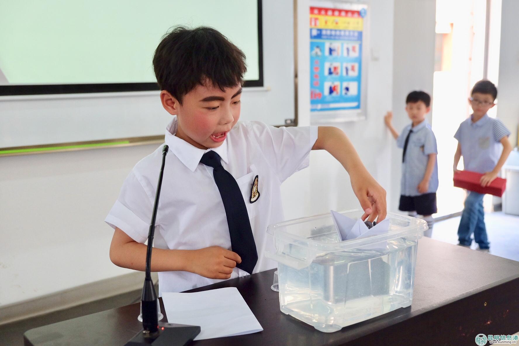 幼兒組特等獎獲獎?wù)呃铨堈故拘?shí)驗(yàn)。記者張薇/攝