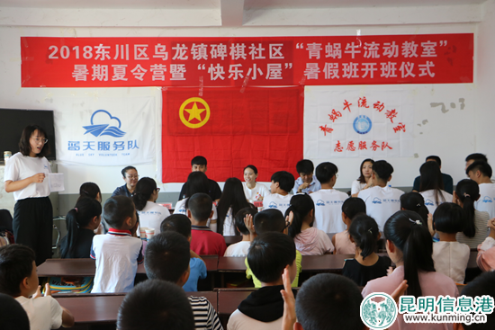 昆明信息港訊 7月18日上午,共青團(tuán)東川區(qū)委主辦的東川區(qū)“青蝸?!绷鲃?dòng)教室夏令營(yíng)暨“快樂(lè)小屋”暑假班在拖布卡鎮(zhèn)、烏龍鎮(zhèn)、湯丹鎮(zhèn)同時(shí)開(kāi)班并舉行了開(kāi)班儀式。