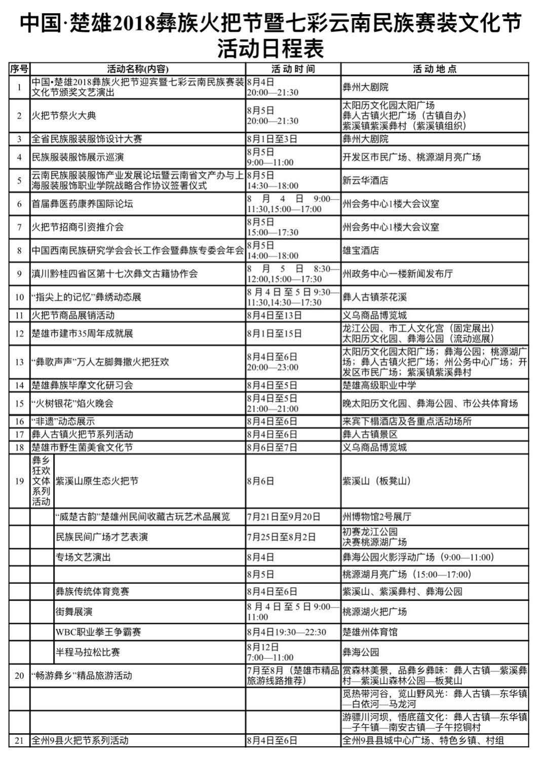 中國(guó)·楚雄2018彝族火把節(jié)暨七彩云南民族賽裝文化節(jié)活動(dòng)日程表