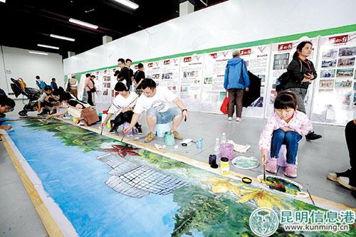 昆明植物園區(qū)內(nèi)設(shè)有科普咨詢服務(wù)點,為游客提供植物鑒賞、養(yǎng)花栽樹及園林園藝等咨詢服務(wù);園區(qū)還準(zhǔn)備了一條9.9米長的植物家園畫卷,邀請擁有繪畫功底的志愿者進(jìn)行框架創(chuàng)作,再由市民填色,共同繪制熱愛自然的長卷畫作。