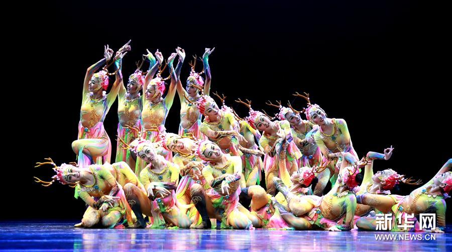西北民族大學(xué)舞蹈學(xué)院的學(xué)生在表演舞蹈《七彩靈鹿》