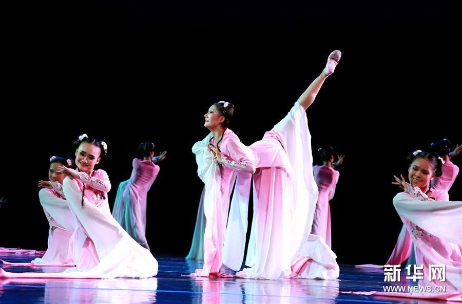 昆明市藝術(shù)學(xué)校的學(xué)生在表演舞蹈《弦樂(lè)悠揚(yáng)》 新華社 記者潘旭/攝