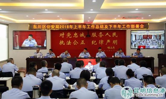 昆明信息港訊 記者合宇聰 7月26日,東川區(qū)2018年下半年公安工作會(huì)議召開(kāi),會(huì)議深入學(xué)習(xí)貫徹習(xí)近平總書(shū)記系列重要講話(huà)和對(duì)政法公安工作最新指示精神,按照2018年中央省市區(qū)政法工作會(huì)議、全國(guó)全省全市公安工作會(huì)議和年初全區(qū)公安工作會(huì)議的部署要求,總結(jié)上半年工作,分析當(dāng)前形勢(shì),動(dòng)員部署全區(qū)公安民警不忘初心、牢記使命、堅(jiān)守定力,以強(qiáng)烈的政治責(zé)任感、頑強(qiáng)的戰(zhàn)斗意志,攻堅(jiān)克難、按序推進(jìn),奮力開(kāi)創(chuàng)下半年?yáng)|川公安工作新局面。