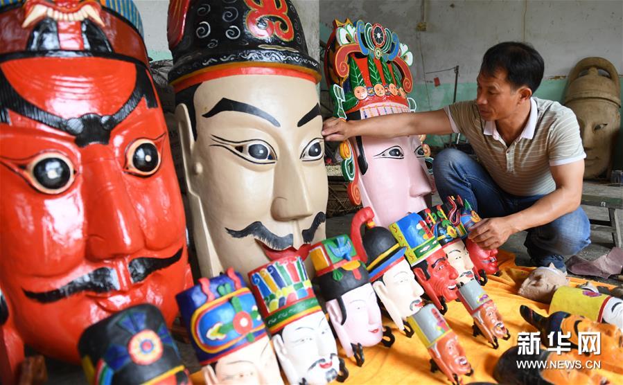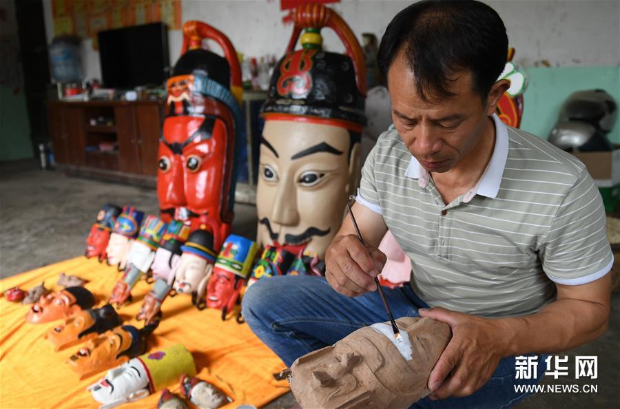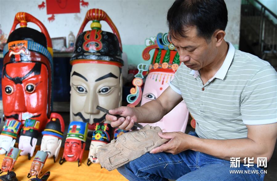 廣西環(huán)江毛南族自治縣洛陽(yáng)鎮(zhèn)江口村大河屯農(nóng)民方文展是家族第四代毛南族儺面雕刻傳人,也是自治區(qū)級(jí)非物質(zhì)文化遺產(chǎn)代表性項(xiàng)目——毛南族木雕技藝的代表性傳承人。 毛南族儺面需要用優(yōu)質(zhì)木料雕琢,分文、武、善、兇4大類36套72種面相,性格神態(tài)各有特點(diǎn)。雕刻者要在毛南族民間口頭文學(xué)的基礎(chǔ)上依據(jù)個(gè)人想象創(chuàng)作,一張儺面需要10多道工序花費(fèi)近一周時(shí)間才能完成。 (新華社 記者陸波岸)