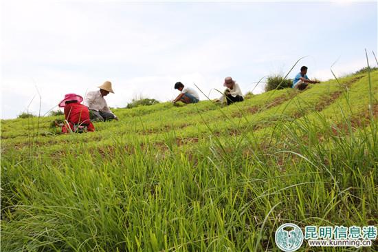 東火山村村民在田間除草