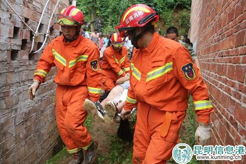 17時30分,經過救援官兵奮力施救,被困人員被成功救出,并把傷員抬上在現(xiàn)場待命的120救護車。