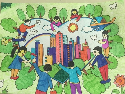 “我的家,不僅有美景,也有高樓大廈!大家都是很好的朋友,會經(jīng)常在一起玩。像一家人一樣!”熱法提·麥合木提的參賽作品反映出家鄉(xiāng)的真實(shí)面貌。城市建設(shè)越來越好,鄰里之間像親人一樣。