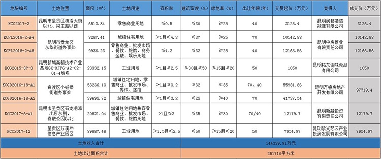 7月20日位于官渡區(qū)廣福路與昌宏西路交匯處以西兩個(gè)地塊打包現(xiàn)場(chǎng)掛牌,最終被昆明萬(wàn)睿地產(chǎn)以總和底價(jià)9.77億成交,樓面地價(jià)約3285元/㎡-3286元/㎡。