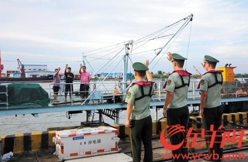 金羊網(wǎng)訊 記者黃麗娜、通訊員陳文星攝影報(bào)道:中山一直是全國最大供應(yīng)香港、澳門淡水魚的出產(chǎn)地,供應(yīng)量占香港市場份額的40%。每天傍晚,中山邊檢執(zhí)勤官兵都會(huì)早早等候在碼頭,為滿載淡水魚的船舶提供“綠色通道”邊檢服務(wù)。
