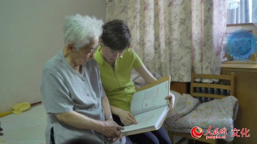 于藍(lán)老師與記者翻看影集