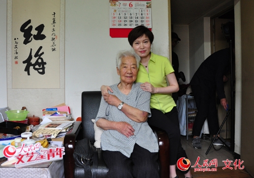 于藍(lán)老師在客廳里等候著我們,白底黑點(diǎn)的短袖衫,黑色細(xì)條紋西褲,簡樸的衣著,讓老人看起來神清氣爽。見我們來了,于藍(lán)老師臉上露出溫和的微笑,高興地拉著我的手聊起天來:“我今年已經(jīng)98歲啦,前不久眼睛剛做過手術(shù),所以老要滴眼藥水……腿腳、耳朵也不太好了,一會(huì)我要是聽不清,你就湊到我跟前說吧。”我特意把5年前的專訪報(bào)道帶給于藍(lán)老師看,老人很開心,拿起放大鏡邊看邊問,“這個(gè)能送給我做個(gè)紀(jì)念嗎?”