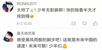 網(wǎng)友們紛紛留言:“太快了!計(jì)數(shù)都來不及!”“少年強(qiáng)則中國強(qiáng)!”