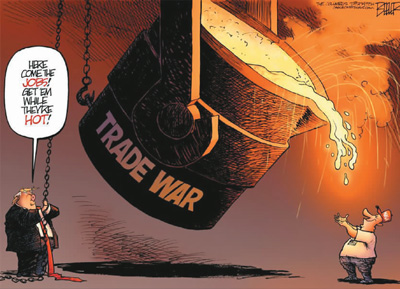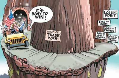 特朗普一邊高喊“打贏很容易!”一邊駛向“貿(mào)易戰(zhàn)之路”,而路的盡頭是失業(yè)、虧損、政府稅收損失和便宜商品減少等惡果。