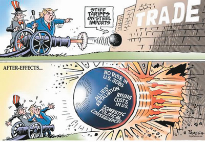 特朗普射出“增加鋼鐵進口關(guān)稅”炮彈,得到的卻是無法增加就業(yè)、盟友的報復(fù)、成本上升以及國內(nèi)政治影響等回擊。