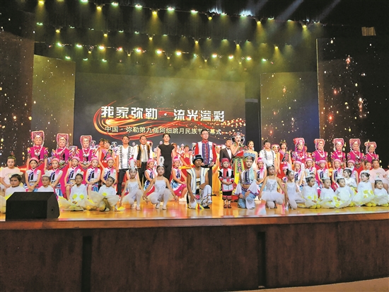 文藝晚會(huì)上,約百名演員先后帶來了12個(gè)精彩節(jié)目,以歌舞樂的形式歡慶節(jié)日。據(jù)悉,本屆阿細(xì)跳月民族節(jié)將持續(xù)至8月10日。期間,彌勒市將舉辦民族民間傳統(tǒng)文藝展演、阿細(xì)傳統(tǒng)摔跤比賽、愛佐愛莎歌舞藝術(shù)表演、作家采風(fēng)、地方文化與當(dāng)代長(zhǎng)篇小說創(chuàng)作懇談會(huì)、彌勒文化產(chǎn)品博覽會(huì)等10余項(xiàng)活動(dòng),以多種形式展示和弘揚(yáng)優(yōu)秀傳統(tǒng)民族文化。(云南日?qǐng)?bào) 記者朱海)