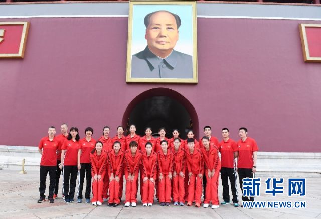 中國(guó)女排在天安門(mén)廣場(chǎng)觀看升國(guó)旗儀式 新華社記者李俊東/攝
