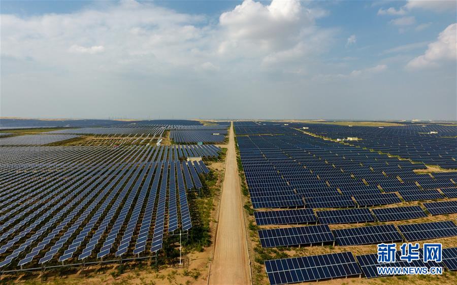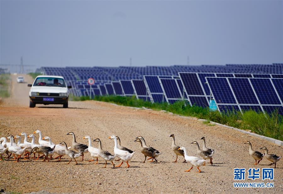 這是內(nèi)蒙古鄂爾多斯市杭錦旗庫布其沙漠生態(tài)太陽能光伏光熱治沙發(fā)電綜合示范地(8月1日攝)?!鞍迳习l(fā)電、板下種草、板間養(yǎng)殖”,目前該太陽能發(fā)電項目治沙面積達到了13.3平方公里,每年發(fā)電5億千瓦時,實現(xiàn)銷售收入4.5億元。其社會效益、生態(tài)效益、民生效益、經(jīng)濟效益十分顯著。新華社記者 邢廣利 攝