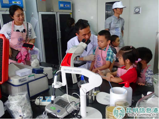 昆明信息港訊 2018年8月3日,昆明市食品藥品檢驗(yàn)所組織開(kāi)展“食品檢測(cè)實(shí)驗(yàn)室開(kāi)放日”活動(dòng),活動(dòng)旨在讓更多的市民參與到國(guó)家食品安全示范城市工作中來(lái),共同推進(jìn)國(guó)家食品安全示范創(chuàng)建試點(diǎn)城市的建設(shè)。全市幼兒園、中小學(xué)生及市民,共計(jì)76名代表參加了本次活動(dòng)。