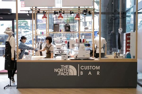 韓國(guó)戶外品牌The North Face 的明洞旗艦店一樓已經(jīng)不是常規(guī)的賣場(chǎng),而是變成了消費(fèi)者的體驗(yàn)空間?!岸ㄖ瓢伞笔菍⑾M(fèi)者們喜愛(ài)的大寫(xiě)字母或語(yǔ)句印在衣服上,或者在衣服上粘上布貼標(biāo)志的定制體驗(yàn)空間??紤]到明洞店游客眾多,因此也提供漢語(yǔ)、日語(yǔ)、英語(yǔ)、法語(yǔ)等外語(yǔ)文字圖案的服務(wù)。該公司相關(guān)人士表示,一位中國(guó)顧客購(gòu)買(mǎi)了50件T恤衫用于贈(zèng)送禮物,由此可見(jiàn),公司的此種營(yíng)銷方式贏得了很好的反響。