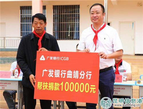 儀式現(xiàn)場,廣發(fā)銀行昆明分行和曲靖分行向熱水鎮(zhèn)陡溝完小捐贈10萬元扶貧專項資金,用以幫扶修繕學校圍墻、地面硬化及修建綠化帶,并捐贈價值14000余元的圖書和體育用品用于豐富學校基礎教育資源。