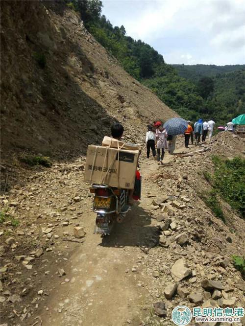 8月10日,從湖南趕來的企業(yè)家于杰和昆明之美負責人顧中國連夜乘車到紅河縣城,先期運達的家用電器和棉被由越野E族紅河分隊的12輛汽車裝載,11日一大早浩浩蕩蕩奔赴蘇機寨。愛心車隊經(jīng)過6小時翻山越嶺跋涉,在距村寨3公里處停了下來,1公里左右的道路被大雨沖垮,愛心物資只能由等候在此的村民用肩扛或者用摩托車運到1公里外,再用農(nóng)用車運到蘇機寨,于杰、顧中國和30多名愛心人士步行3公里淌小溪踩著擱腳的石子路爬到位于山頂?shù)拇逭?/p>