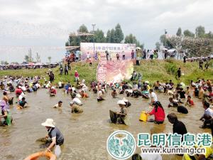 昆明信息港訊(昆明日報 記者趙書勇 通訊員王紅玲 李黎愿)“摸著了!摸著了!抓住了!抓住了!”在齊腰深的泥水塘中,晉寧1500多人“回歸原始社會”,用雙手拿著網(wǎng)兜等漁具,往渾濁的泥水中探索魚類并將之抓住。這是昨日晉寧·舊寨漁人文化節(jié)“渾水摸魚”項目上的一個片段。