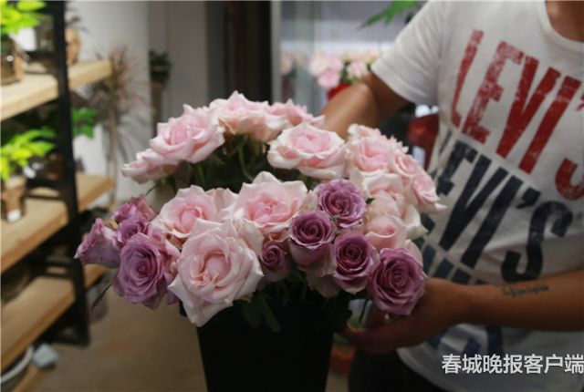 記者走訪了金碧路發(fā)現(xiàn),很多花店都已經(jīng)開始接受預(yù)訂,而且數(shù)量一直在增長(zhǎng)。一家名為“花潮卉”的店里已擺滿了許多的玫瑰花,有些是剛運(yùn)來的散花,有些是包裝好可以直接賣的?!懊磕甑倪@幾天,我們家就會(huì)收到很多的訂單,一般都是從七夕前兩周就開始有人來下單了,然后七夕那天由我們送出或客人直接來店里拿。”這家花店店主介紹。