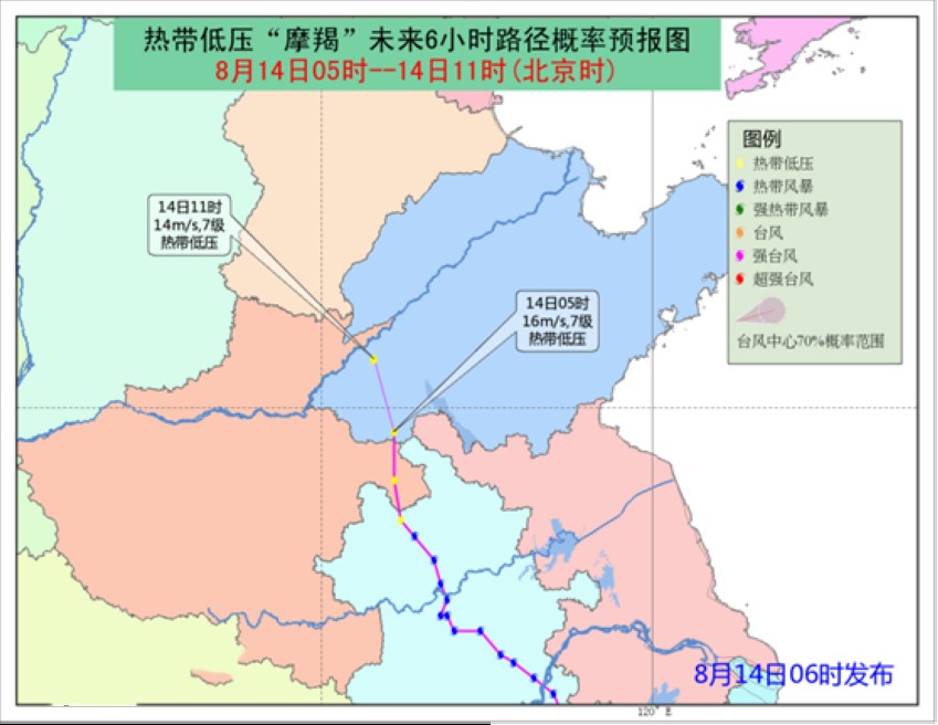 受第14號臺風“摩羯”減弱后的環(huán)流和弱冷空氣共同影響,14至15日河北西部南部、河南北部、山西東南部、山東西北部、黃河三門峽至花園口區(qū)間等地將有暴雨到大暴雨,預計海河南系可能發(fā)生較大洪水過程。國家防總于8月14日15時啟動防汛Ⅲ級應急響應,派出5個工作組赴河北、河南等省,協(xié)助指導防汛抗洪工作。