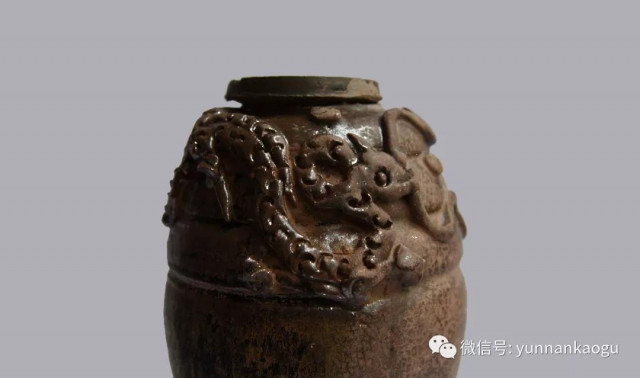 大部分器物都為素面,但是特別值得一說的是,在多件醬釉罐的陶器肩部,貼筑有凸起的龍紋,十分形象。