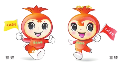 “創(chuàng)文”吉祥物是“創(chuàng)文”形象的擬人化表現(xiàn)形式,旨在增強文化親和力,以使創(chuàng)文工作更具地域特征及傳播性。吉祥物采用蒙自市的特產(chǎn)——石榴為原型擬人化變現(xiàn)。男孩取名為“福娃”、女孩取名為“喜娃”,寓意多籽多福、福至蒙自、平安喜樂的美好愿景。(紅河日報 通訊員盧斌)