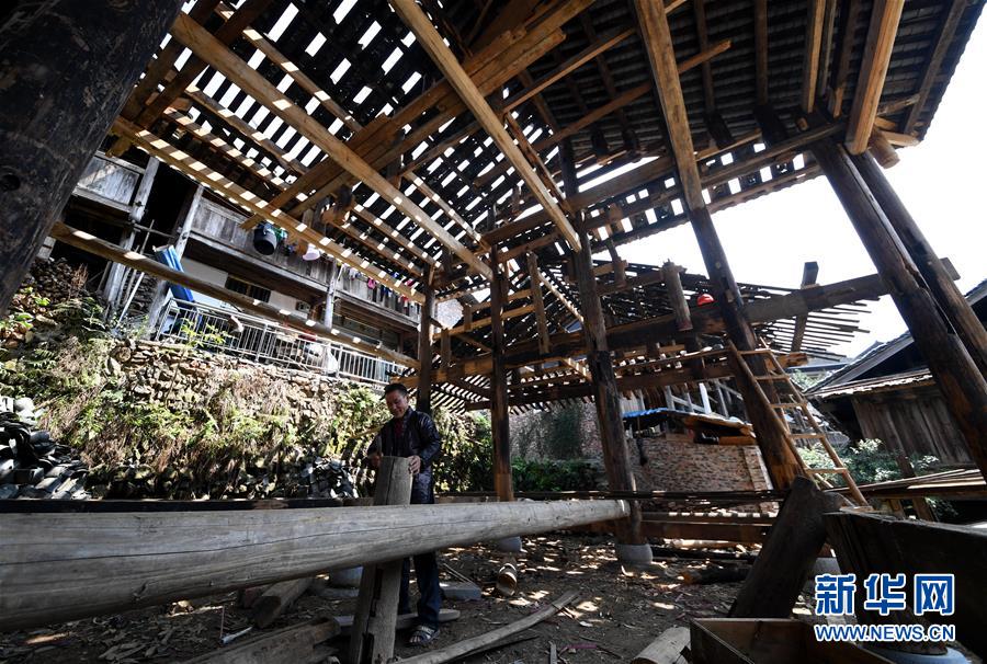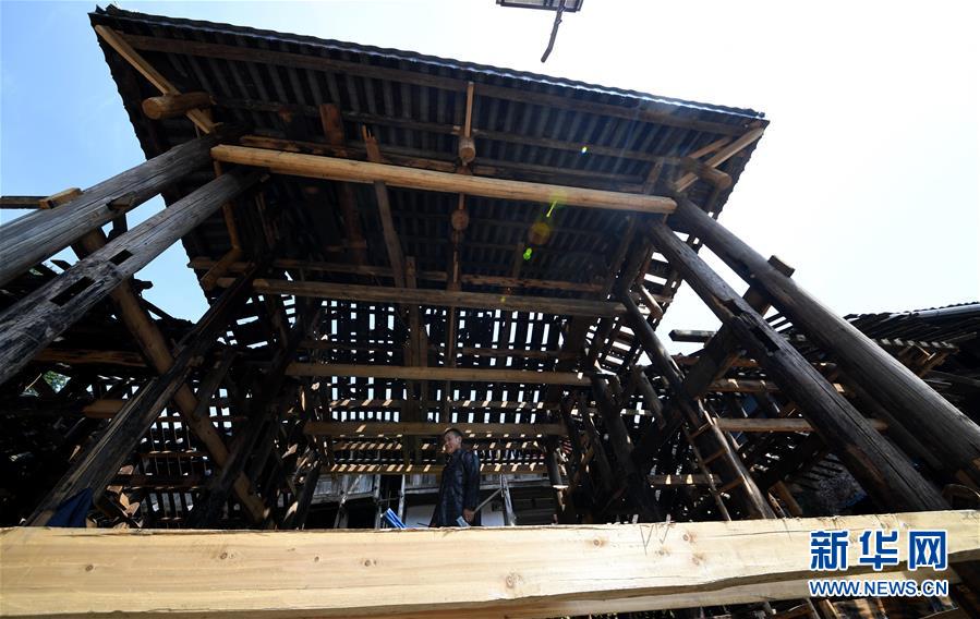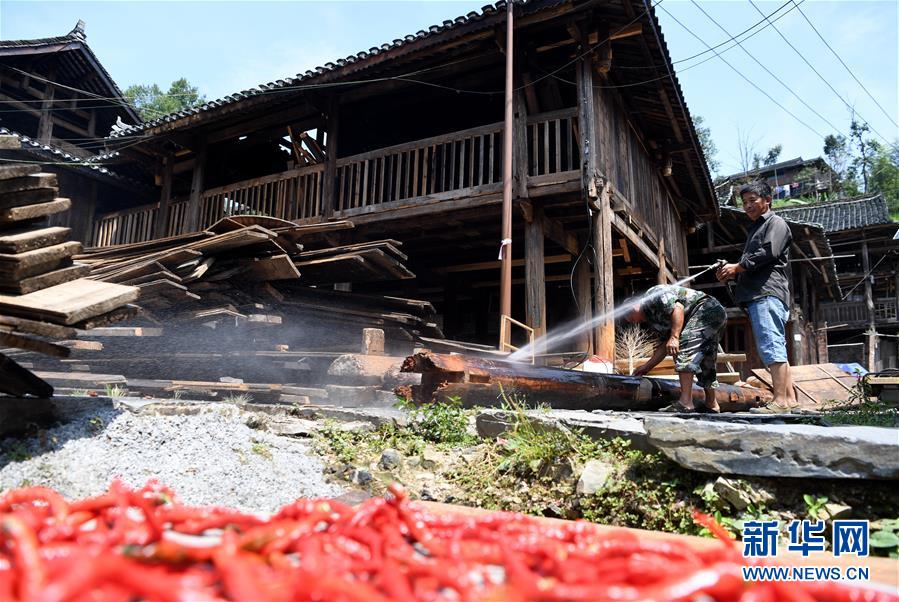 8月14日,村民行走在宰蕩侗寨正在改造的戲臺(tái)上。 今年以來(lái),貴州省黔東南苗族侗族自治州榕江縣栽麻鎮(zhèn)宰蕩侗寨在充分利用既有資源優(yōu)勢(shì)的同時(shí),采取“公司投入+農(nóng)房入股+村委管理+村民動(dòng)手”的方式,讓村民自己動(dòng)手,在保持原貌的基礎(chǔ)上,對(duì)閑置資源進(jìn)行改造升級(jí)、轉(zhuǎn)變功能等,打造“侗歌”“侗餐”等特色鄉(xiāng)村游品牌項(xiàng)目,推出鄉(xiāng)村旅游升級(jí)版,助力脫貧攻堅(jiān)。 新華社發(fā)(王炳真 攝)