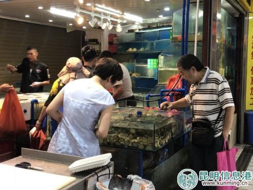 8月14日上午10點30分左右,記者隨創(chuàng)文集中采訪團走進了位于五華區(qū)的和平村海鮮生鮮市場(國服店)里,寬敞的過道、整齊劃一的攤臺以及明亮的燈光,給人一種在逛超市感覺?!笆袌雒刻齑驋?次,包括排水溝的清掃,保證市場環(huán)境整潔,空氣沒有異味?!笔袌鱿嚓P(guān)負責人介紹,該市場還統(tǒng)一配備了電子秤,每周都會固定檢查,不定時的抽查。