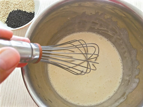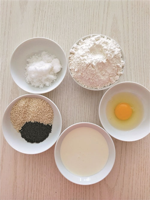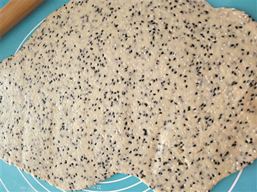 2. 在拌黑白芝麻時(shí),一定要用手壓到面團(tuán)里,避免黑芝麻脫色。