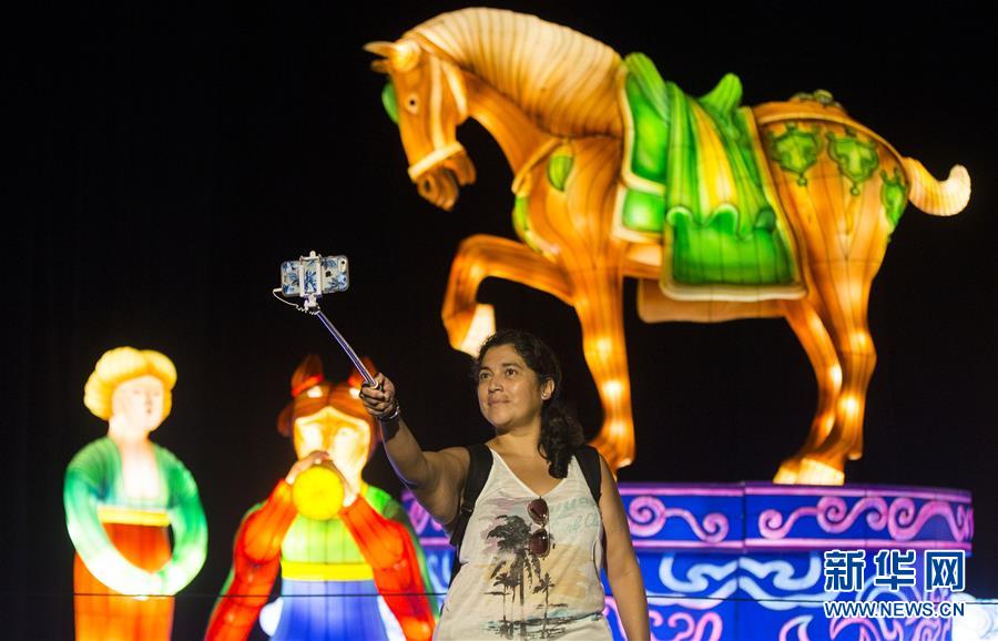 8月18日,在加拿大多倫多,觀眾在展覽會上參觀燈展。 2018加拿大國家展覽會于8月17日至9月3日在多倫多舉行。本屆展覽會推出以“絲綢之路”為主題的中國燈展,通過17組由中國四川自貢90位匠人制作的大型彩燈,向人們介紹古代“絲綢之路”的神話傳說和文化風情。 新華社發(fā)(鄒崢攝)