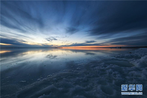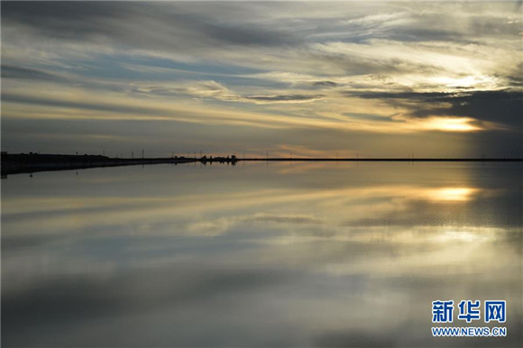 察爾汗鹽湖的晚霞 新華社記者張龍攝