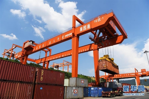 這是重慶果園港裝載作業(yè)現(xiàn)場(chǎng)(8月20日攝)。 新華社記者王全超/攝