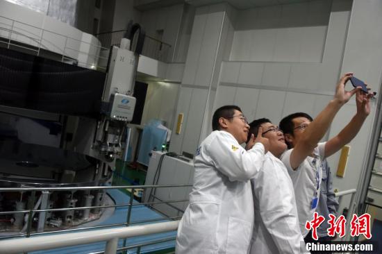 中科院長春光機所科研人員與世界最大口徑單體碳化硅反射鏡自拍合影留念。
