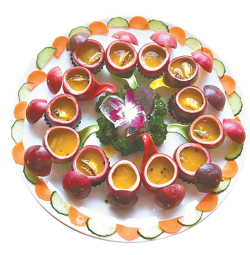此外,百香果肉、果汁還可煎雞蛋,做法簡單。首先將雞蛋在油鍋煎好,然后取百香果果肉及果汁倒到煎蛋上,在鍋中燜煮2分鐘即可,食客開吃時,可體驗到酸甜酥香非一般的口感。