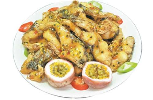 曾立輝說,制作百香果香煎魚腩時,需先將魚腩在油鍋中炸數(shù)分鐘,加入少許醬油、食鹽、姜絲,再小火將魚腩香煎至雙面金黃色,之后取適量的百香果肉、果汁和白糖調(diào)成百香果醬汁,倒入煎好的魚腩,焗燜數(shù)分鐘即可出鍋。曾立輝稱,百香果香煎魚腩這道菜,味道香醇,脆滑酸爽,能讓食客胃口大開,飯量大增。