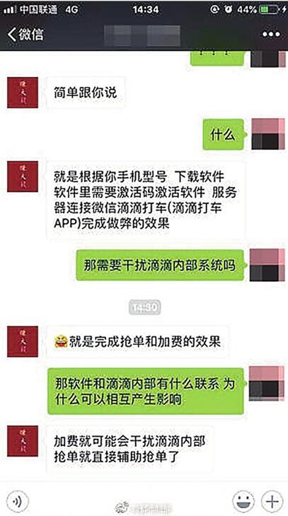 被網(wǎng)絡曝光的“外掛”,源于一位姓王的滴滴司機主動曝光。王師傅說,自己也是偶然從朋友處得知了這個“外掛”的存在,在朋友的介紹下,成功地安裝使用了起來。雖然使用過程中自己每天的收入翻倍,可這樣的賺錢方式始終讓自己覺得良心過不去。思前想后,最終決定主動曝光。