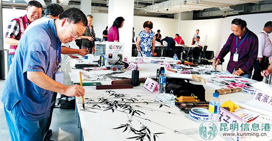 書畫家現(xiàn)場(chǎng)作畫。