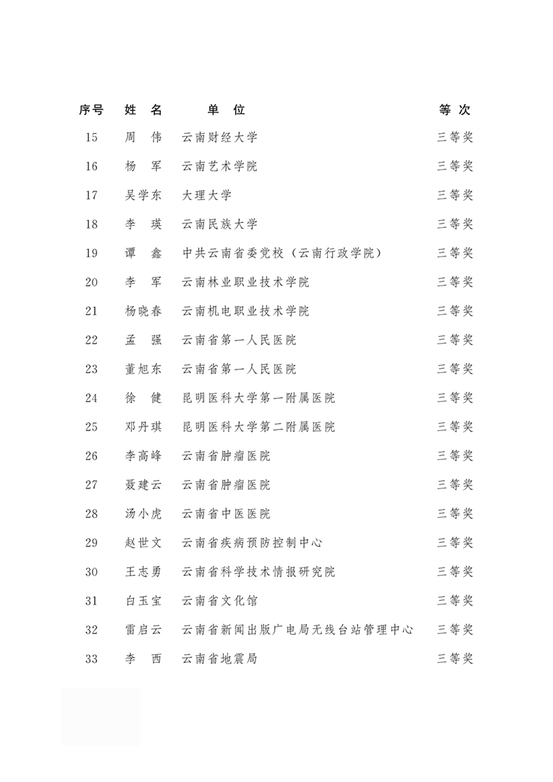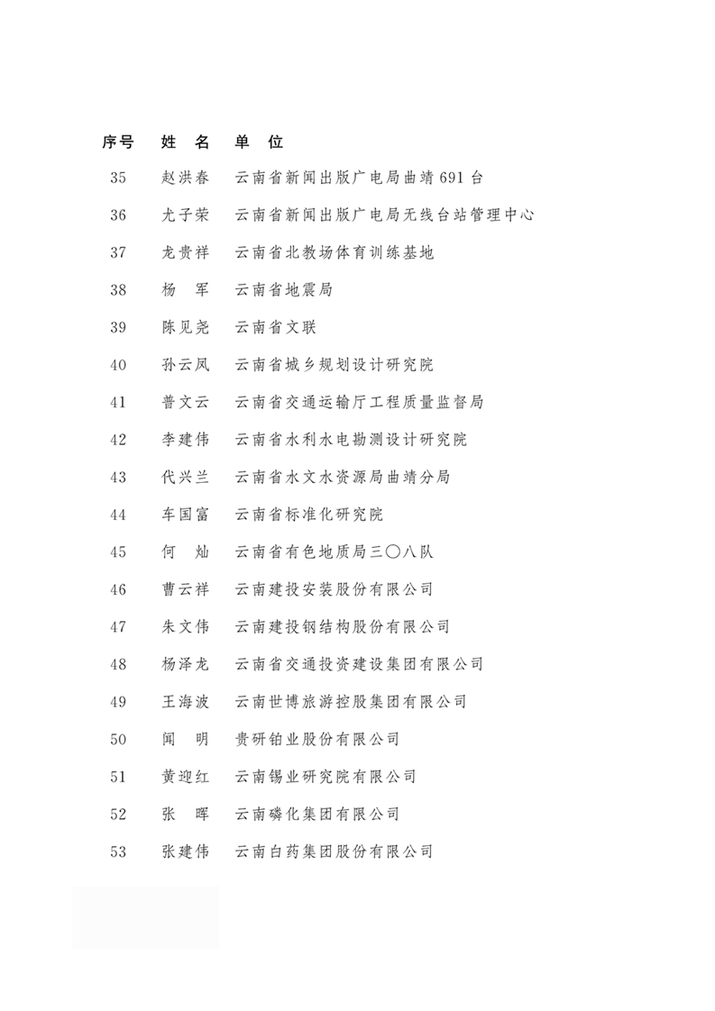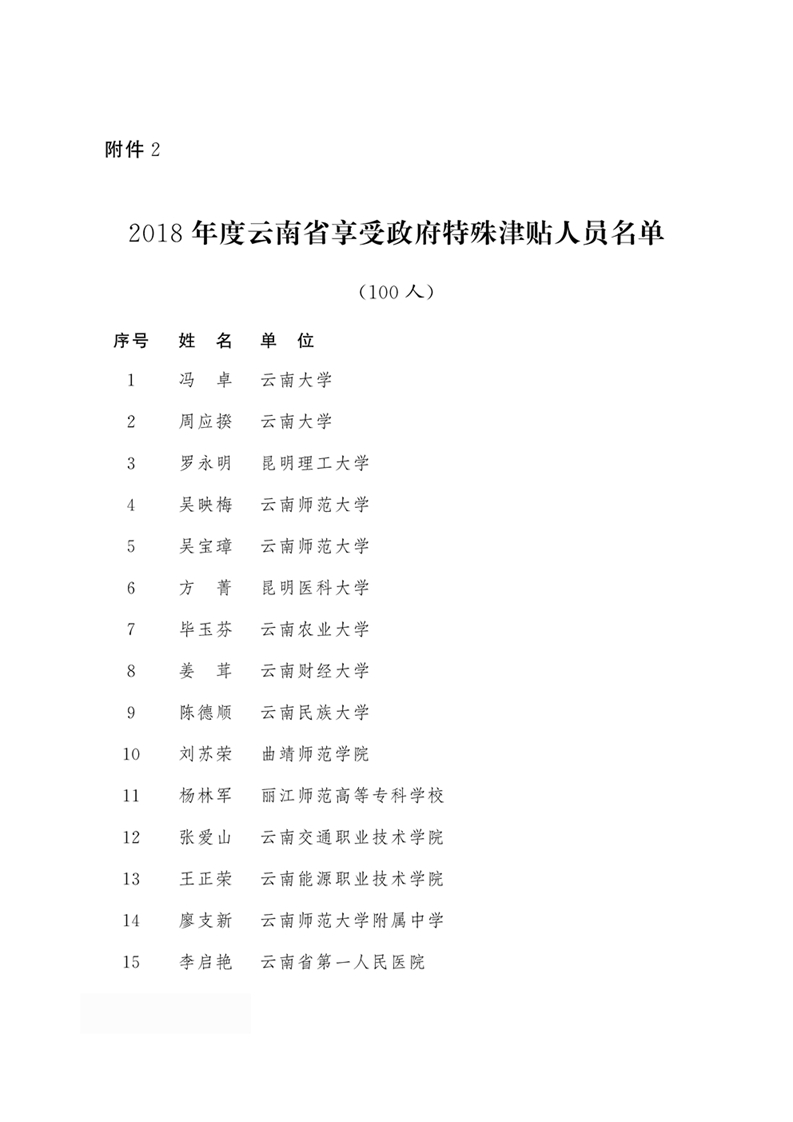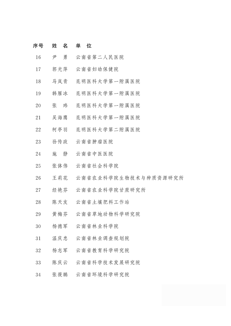 2018年度云南省有突出貢獻(xiàn)優(yōu)秀專業(yè)技術(shù)人才名單