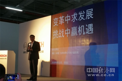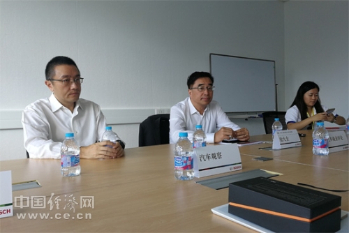 博世(中國)投資有限公司執(zhí)行副總裁徐大全(中)接受記者采訪