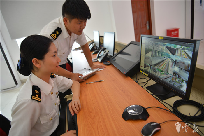 昆明海關(guān)全力支持中亞(開遠(yuǎn)——海防)米軌國際貨運(yùn)班列有序發(fā)展。在河口海關(guān)監(jiān)控指揮中心,大屏幕下整個山腰鐵路口岸的實(shí)時(shí)狀況盡收眼底,關(guān)員小李正拿著一臺類似平板的海關(guān)“移動單兵查驗(yàn)終端”攀登列車對紅磷集團(tuán)申報(bào)出口化肥進(jìn)行查驗(yàn)作業(yè)?!瓣P(guān)員可以直接在平板上進(jìn)行照相錄證、結(jié)果錄入等工作,替代以往返回辦公室打印紙質(zhì)單證、手工填寫查驗(yàn)結(jié)果等環(huán)節(jié),實(shí)現(xiàn)了查驗(yàn)作業(yè)的無紙化”。智能化的監(jiān)管設(shè)施設(shè)備為中亞班列貨物的管得好、通得快提供了強(qiáng)大助力。