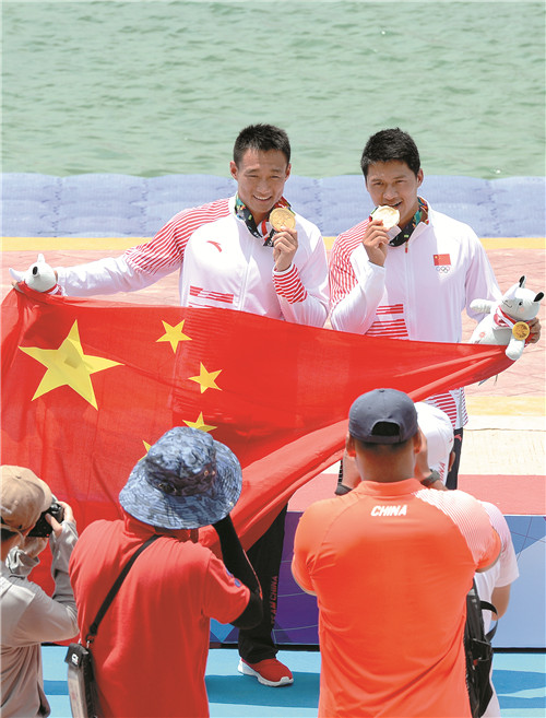 圖為中國隊(duì)王浩、劉浩(右)在頒獎儀式上。新華社