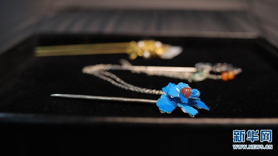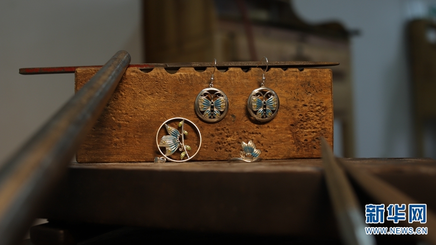 圖為昆工學(xué)生設(shè)計(jì)制作的精美首飾,其中用到了琺瑯工藝。(新華網(wǎng) 周亞平/攝 念新洪、楊沛林/文)