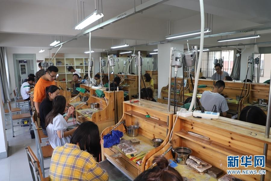 昆明理工大學(xué)城市學(xué)院教師楊景然介紹,學(xué)院特別注重培養(yǎng)學(xué)生的動手能力,實(shí)踐課占到所有課程的55%左右。圖為學(xué)生們在實(shí)訓(xùn)室內(nèi)制作各類首飾。(新華網(wǎng) 周亞平/攝 念新洪、楊沛林/文)