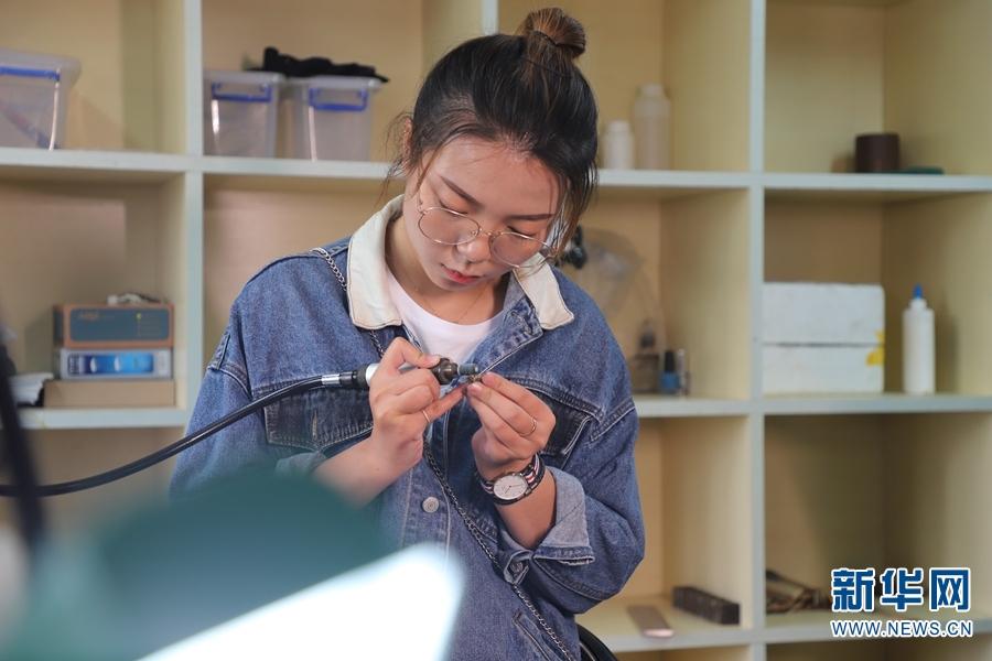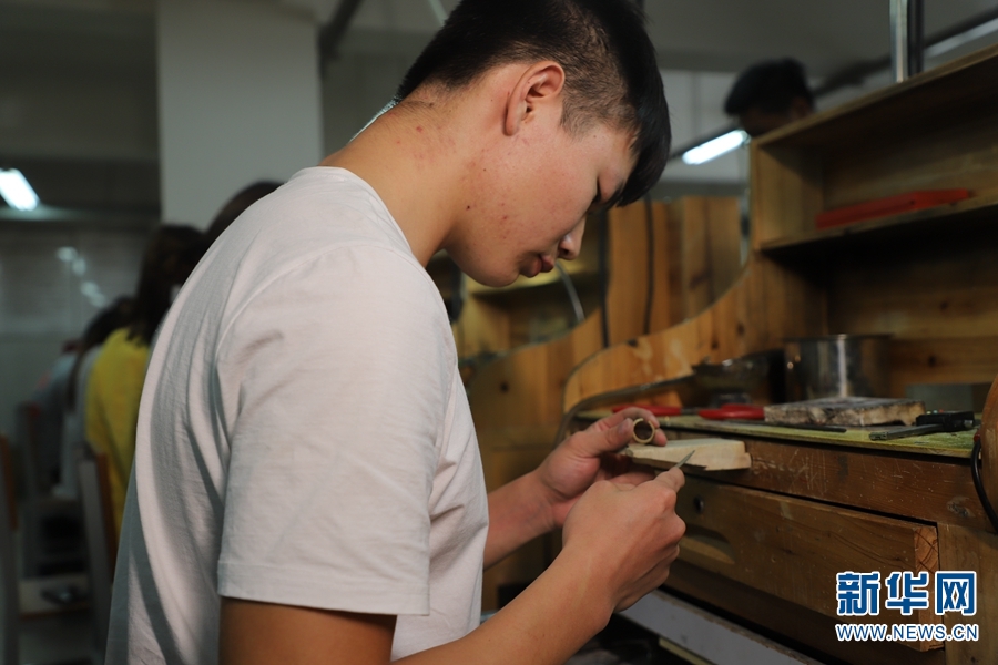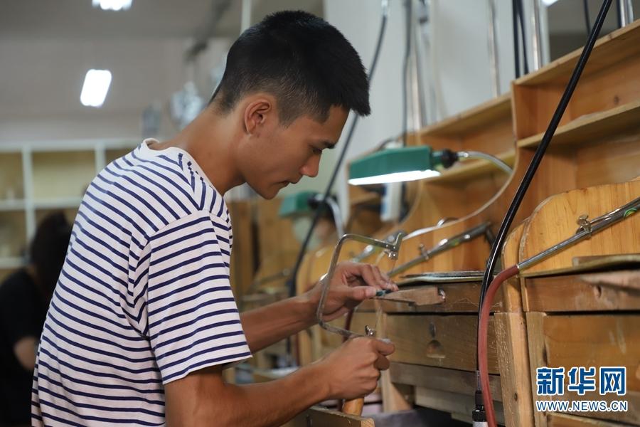 首飾制作是一項(xiàng)非常精細(xì)而枯燥的活計(jì),學(xué)生們有時(shí)候在工作臺前一坐就是幾個小時(shí)。(新華網(wǎng) 周亞平/攝 念新洪、楊沛林/文)