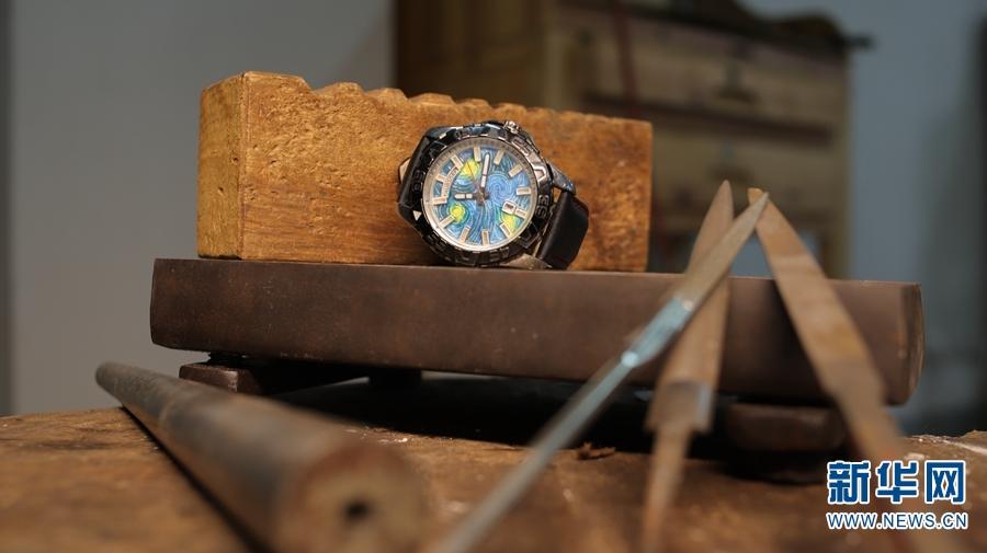 昆明理工大學(xué)城市學(xué)院青年教師謝俊杰,致力于琺瑯工藝的傳承和創(chuàng)新,“記載這塊的文獻(xiàn)非常少,大部分時(shí)候是自己摸索著做,曾經(jīng)失敗過上百次!”逐漸掌握制作工藝的謝俊杰,除制作傳統(tǒng)首飾外,還創(chuàng)新地將琺瑯工藝運(yùn)用到表盤制作上。圖為謝俊杰設(shè)計(jì)制作的名為“梵誓星空”的表盤。(新華網(wǎng) 周亞平/攝 念新洪、楊沛林/文)