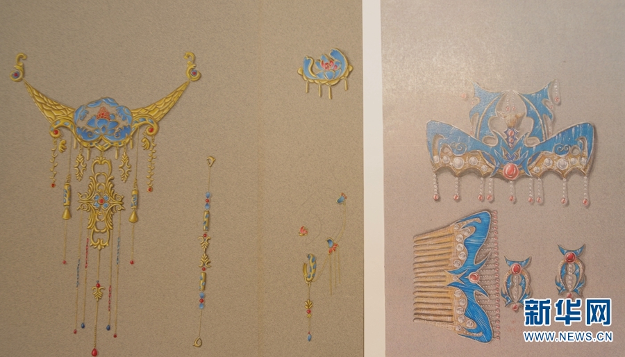 圖為昆工學(xué)生手繪的設(shè)計(jì)圖,濃濃的古典氣息躍然紙上。(新華網(wǎng) 周亞平/攝 念新洪、楊沛林/文)